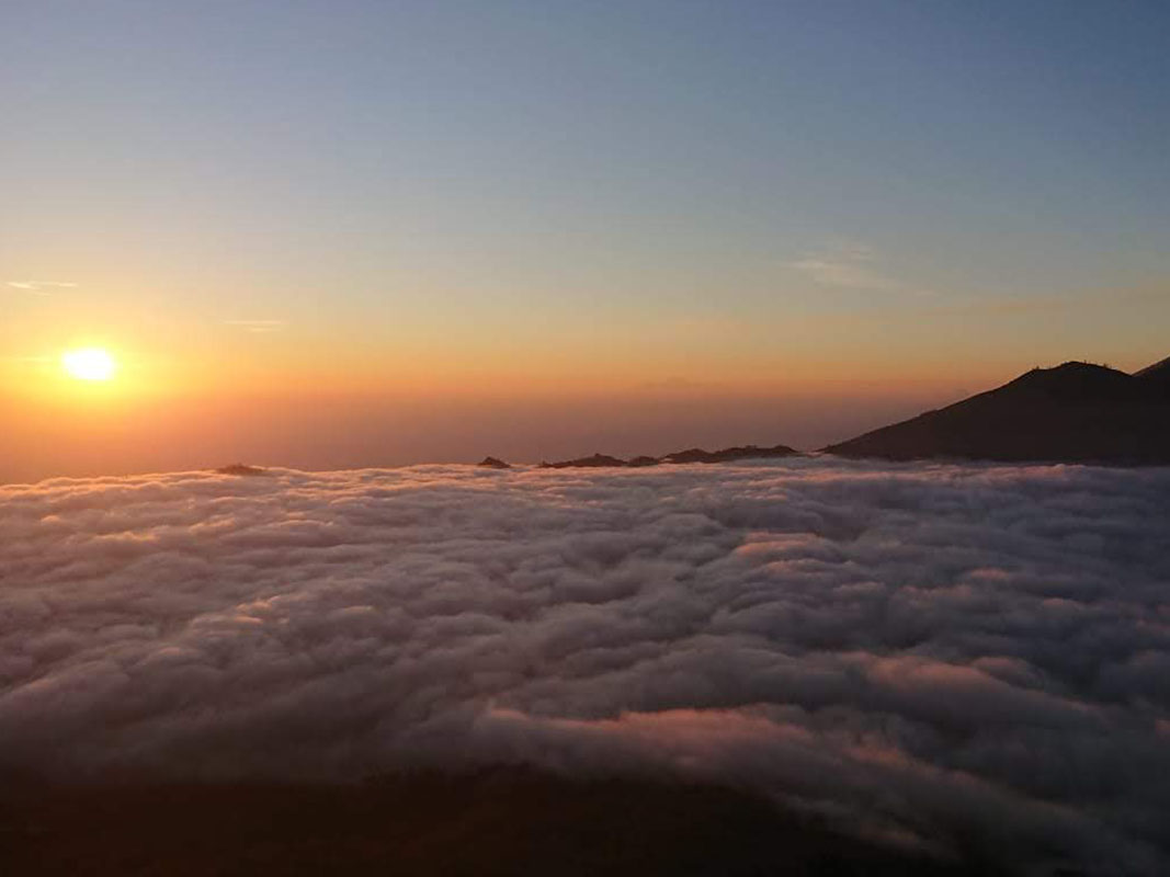 Ein unvergessliches Abenteuer: Im Dunkeln steigen Sie mit Taschenlampen zum Kraterrand des Mount Batur auf. Oben angekommen erleben Sie den magischen Sonnenaufgang über den Mount Abang und Mount Agung. Bei klarer Sicht zeigt sich sogar der Mount Rinjani auf Lombok.